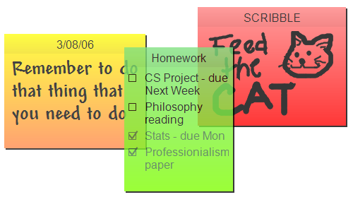 Hottnotes: Un pequeño programa que permite añadir notas al escritorio muy práctico cuando se necesita escribir apuntes y no se tiene papel a la mano o un editor de textos abierto. El programa es gratuito y se lo puede descargar de la misma página de autor:http://www.hottnotes.com/